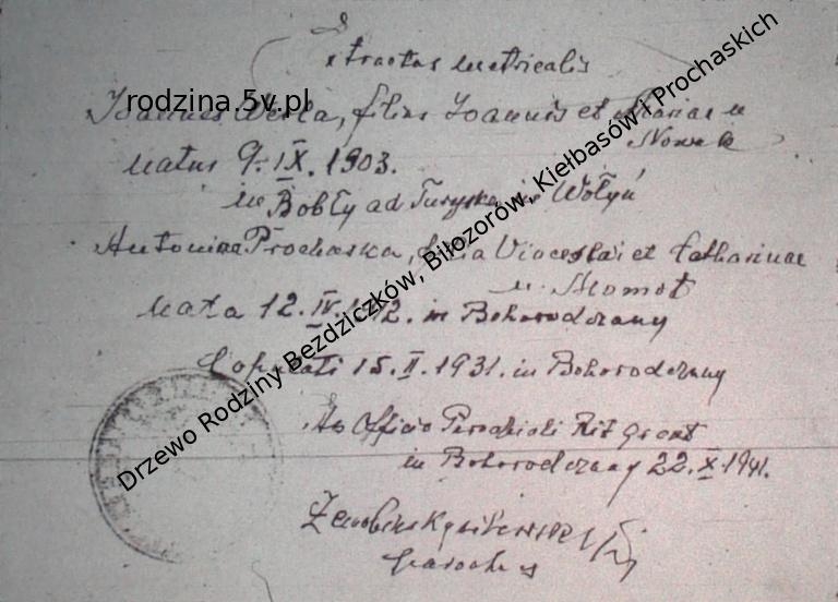 | Urodziny syna 4. | Józef Prochaska ok. 1901 (Wiek 25 lat) |